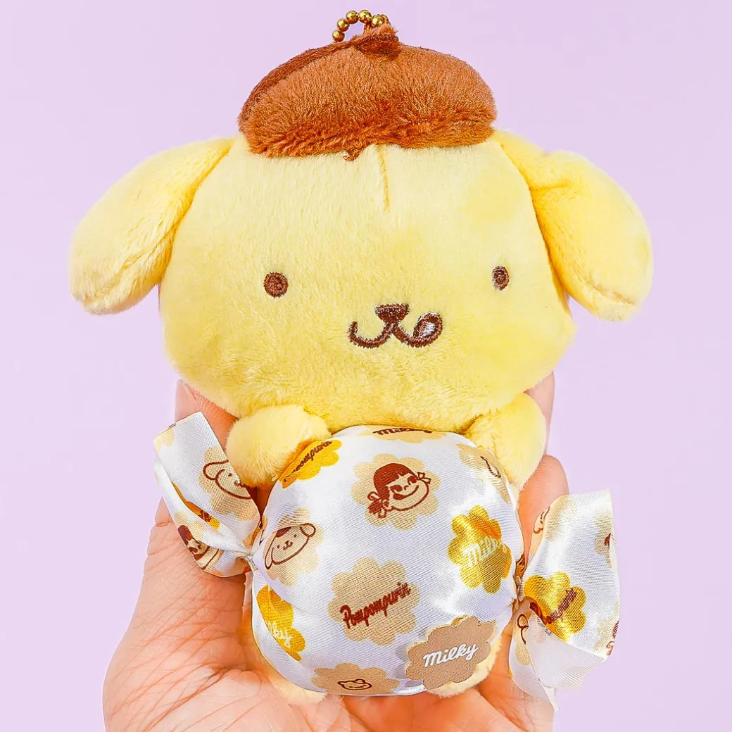 Gift this super cute combo to your loved ones! It includes a kawaii Pompompurin plushie charm holding candy and mimicking Peko-chan’s signature facial expression — plus a box of the famous Milky candies.