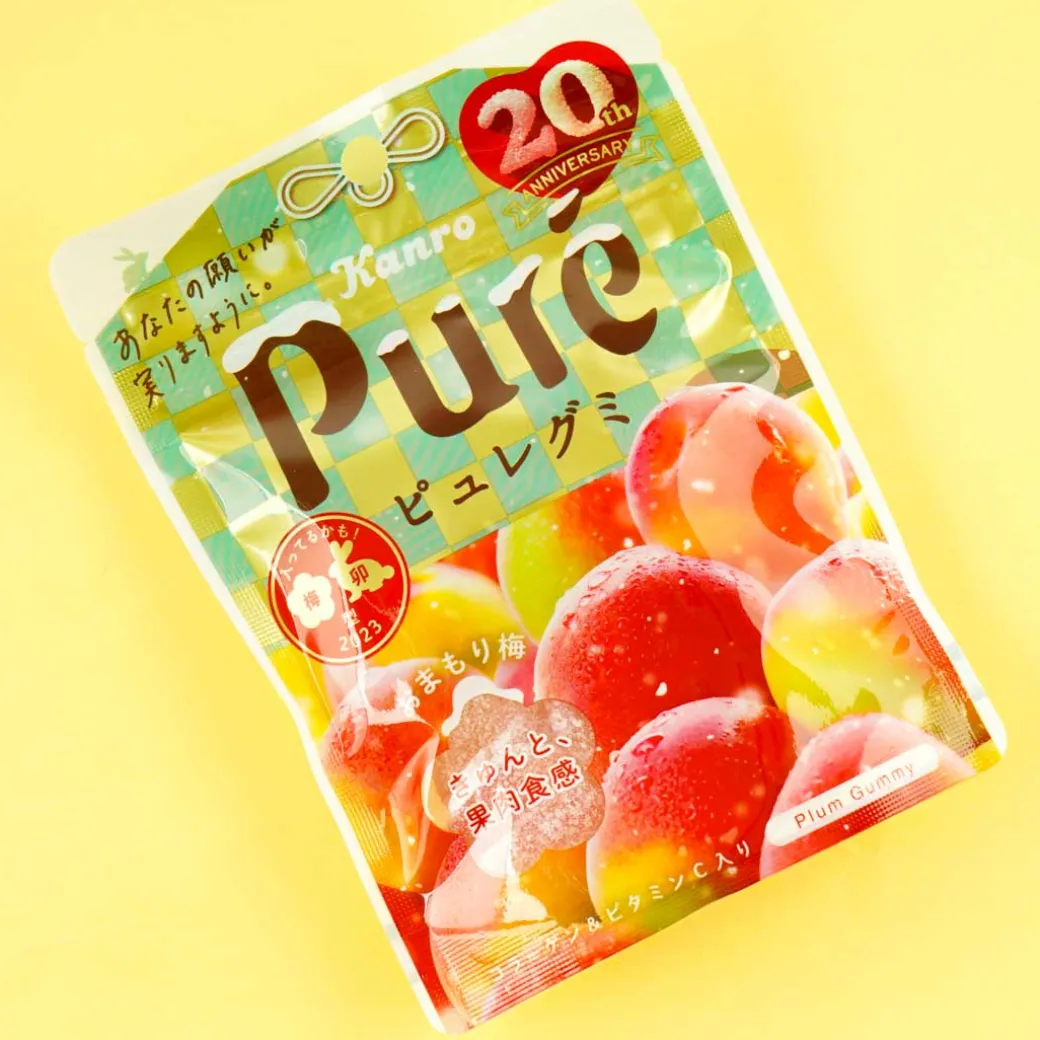 Relish the sweet and sour fruity taste of plums when you try these gummies! Each piece is coated with sour powder for an extra tangy kick! These special candies also have two secret shapes — rabbit and plum blossom, in celebration of Pure Gummy’s 20th anniversary!
