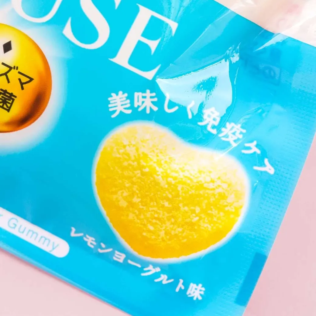 - A pack of sour powder-coated lemon yogurt gummies that contain beneficial bacteria