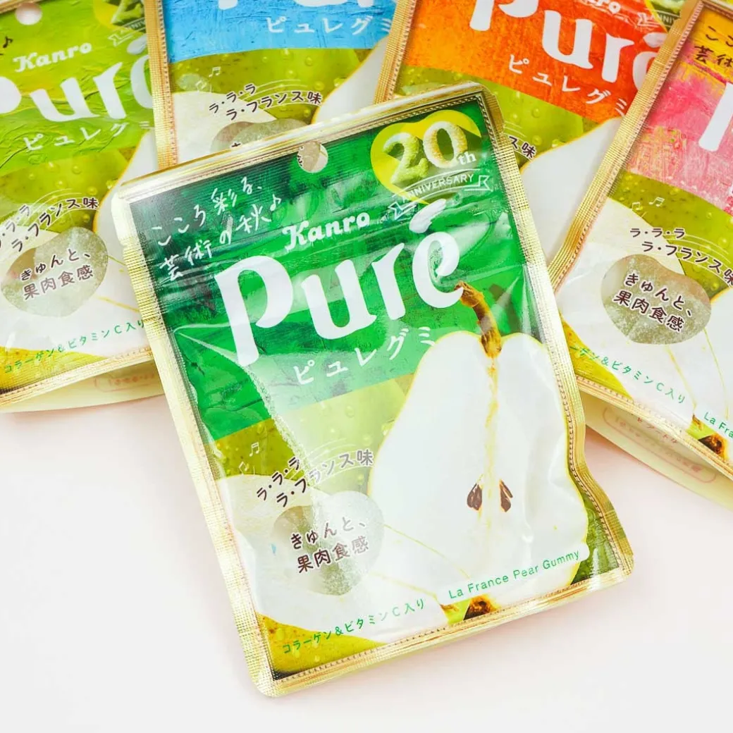 - A pack of sour powder-coated heart gummies flavored with La France pears
