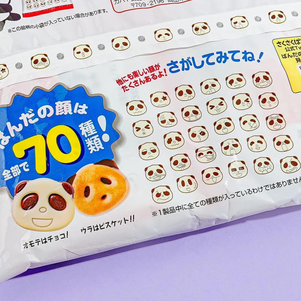 - A bag of yummy panda-shaped biscuits that combines milk chocolate and white chocolate flavors