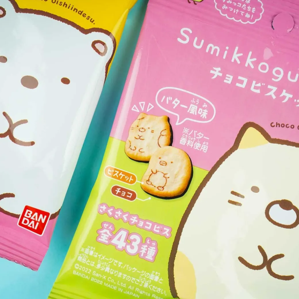 - A pack of Sumikko Gurashi-shaped butter biscuits with a layer of chocolate underneath