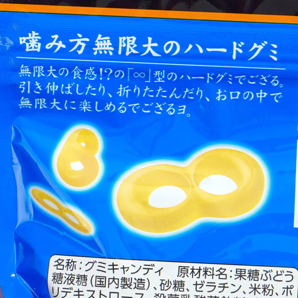 Have fun munching on these white-soda flavored gummy candies! They’re shaped like double rings, resembling the mask of a ninja. You can fold or stretch them before chewing!