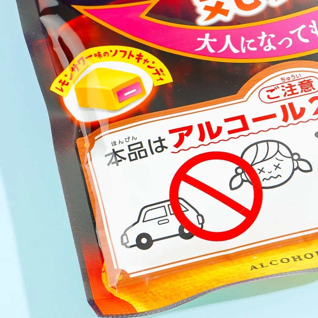 Find a way to relax after a long, hard day at work with this pack of soft candy. These sweet lemon-flavored treats have 2.0% alcohol to help lighten your mood! Each piece is made with lemon and powdered sake.
