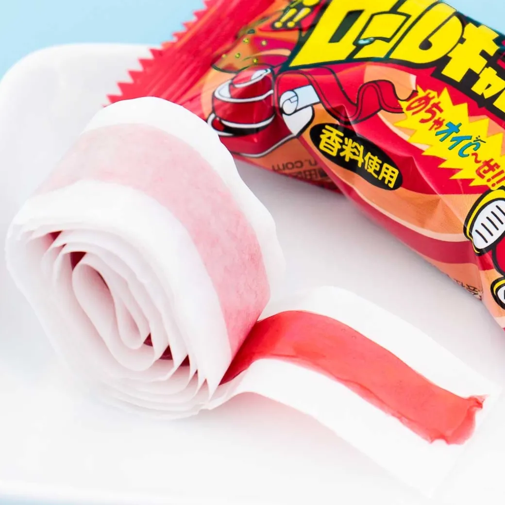 - 50 cm long candy roll made with 60% strawberry fruit juice