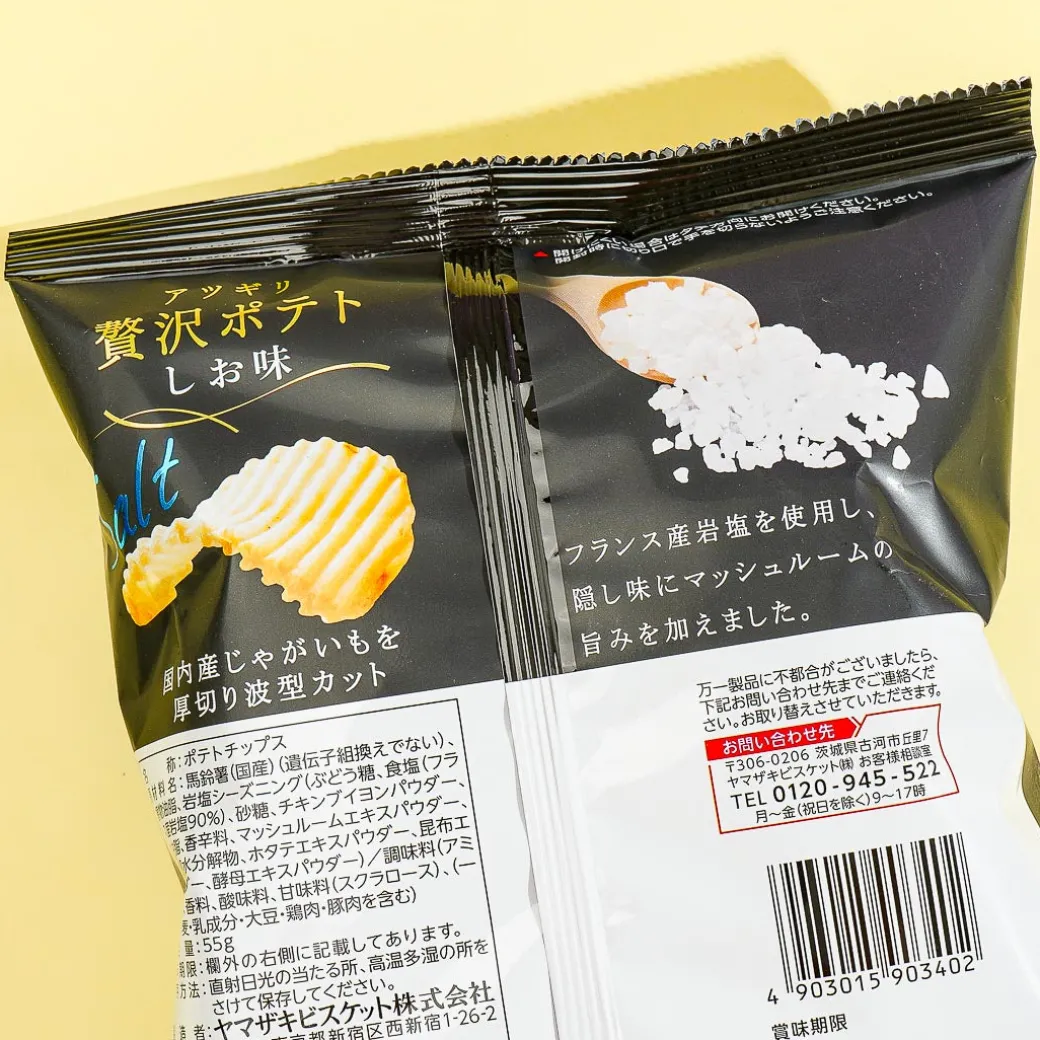 Indulge in these luxurious potato chips that have ridges! Each piece is flavored with premium rock salt sourced from France.